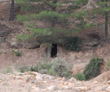 49. Túnel no realizado. Túnel 22 de Peñón Hundido (latitud 39°26'4.85"N; longitud 1°25'26.12"O). En su boca de salida se aprecia el comienzo de excavación. Iba a tener 74,80 m.