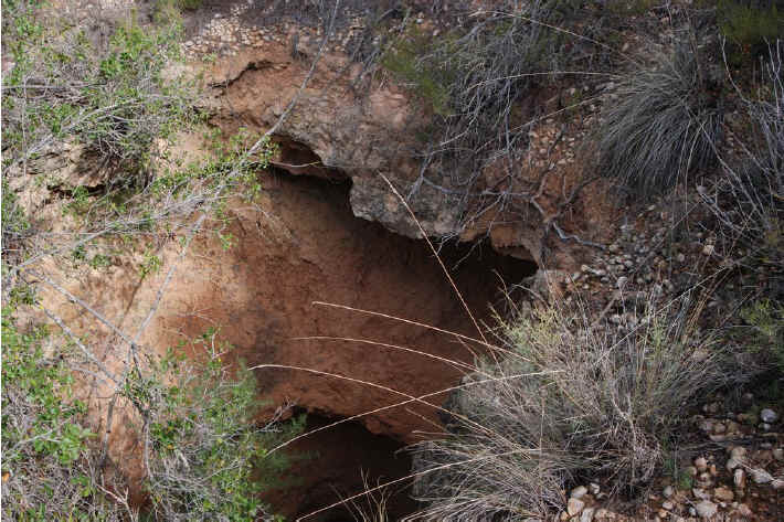 34. Respiradero. Respiradero del Túnel 19 de Pino Llano, junto a la balsa de Pino Llano (latitud 39°25'25.03"N; longitud 1°27'8.90"O). Agujero profundo a unos 300 metros de iniciado el túnel 19 que llega hasta el túnel.