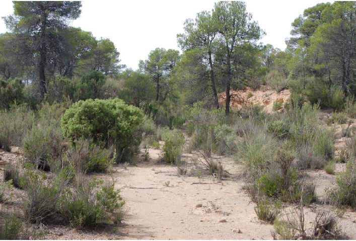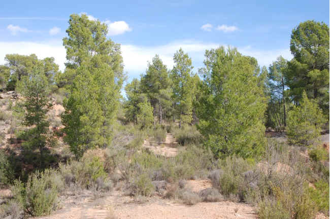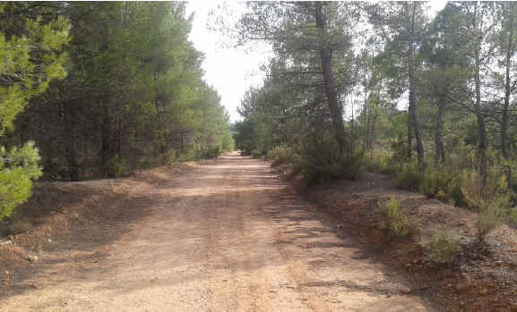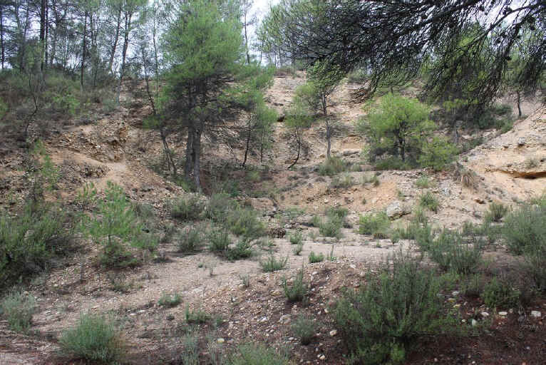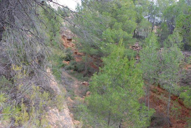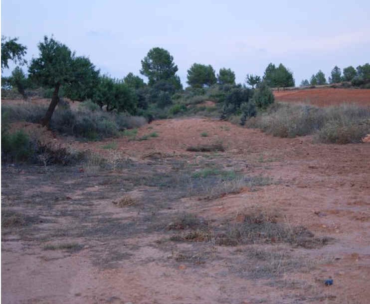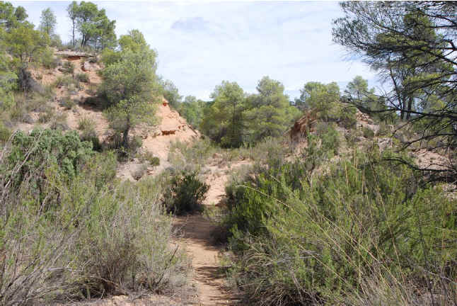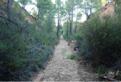 38. Vía trinchera. Trinchera que se inicia en el camino de la Casa de la Tía Dolores o de Los Pleitos (latitud 39°26'10.42"N; longitud 1°26'14.30"O). Poca profundidad. 130 metros de longitud.