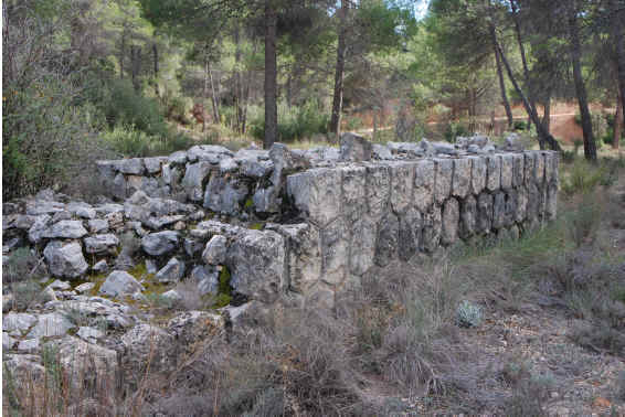 96. Corral. Corral de Cabrera expropiado junto a puente de camino y antes del inicio de la trinchera (latitud 39°27'31.43"N; longitud 1°21'47.02"O). En estado de ruina.