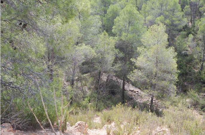 107. Vía trinchera. Trinchera de Cañá Grande (hasta el Corral de Periquín). Profunda. Yacimiento paleontológico del Mioceno Terminal. Mucha vegetación. 498 metros de longitud aproximadamente.