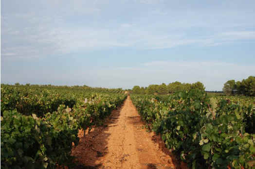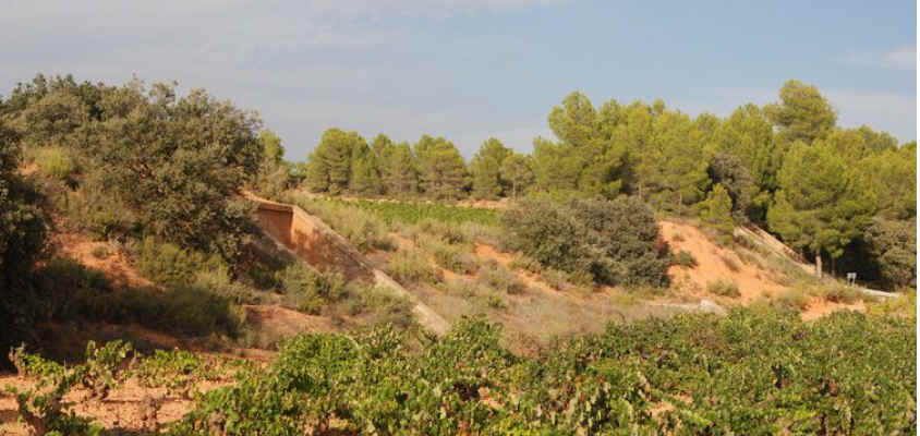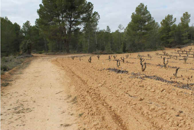 128. Vía explanada. Vía explanada en Majuelos de Oria interrumpida por viña y árboles. 642 metros aproximadamente.