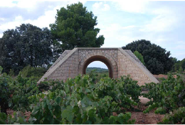 121. Puente de camino. Puente de camino de Los Vallejos (latitud 39º29’59.28”N; longitud 1º16’59.27”O) cerca de la aldea de Los Marcos. Un sólo ojo con bóveda de hormigón armado de medio punto y sillería y dovelas fingidas. Buen estado. Dimensión grande. Rodeado de viña.